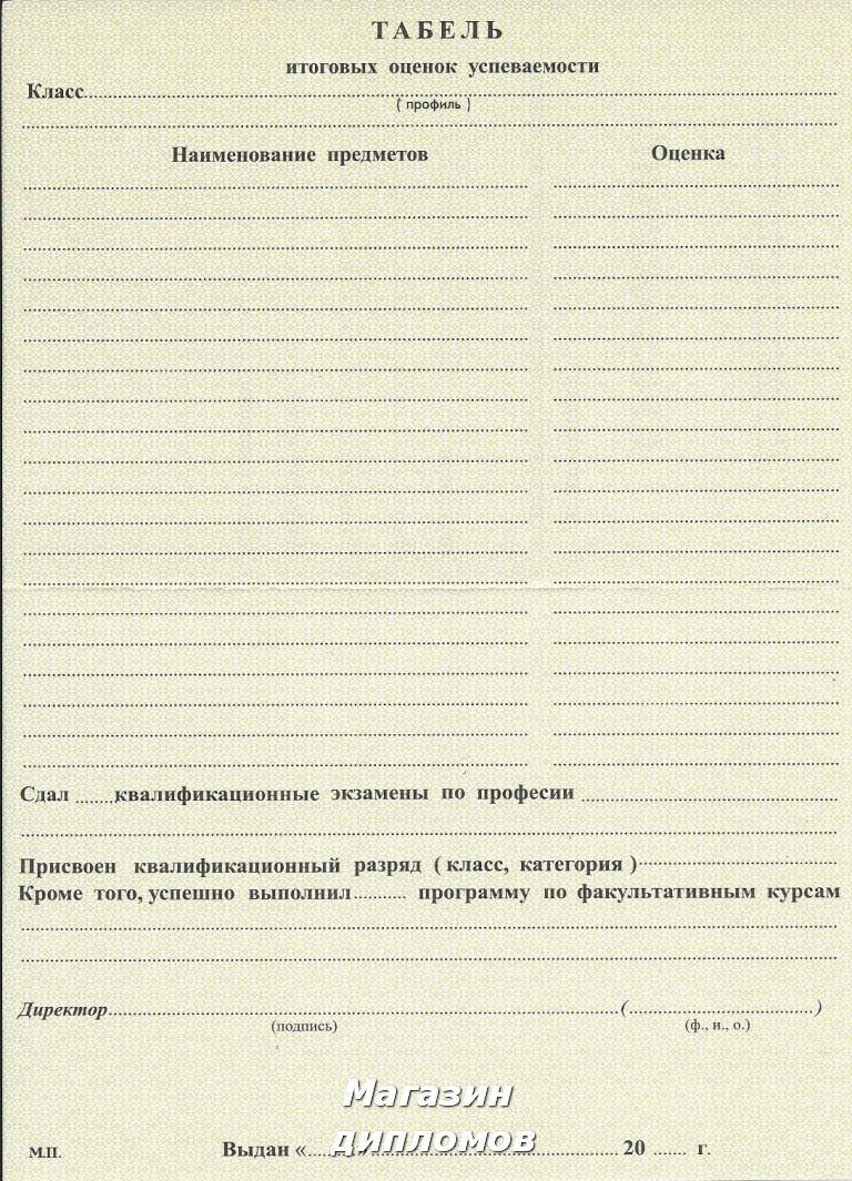 Аттестат Российской Федерации, выдавался с 2010 года по 2013 год.